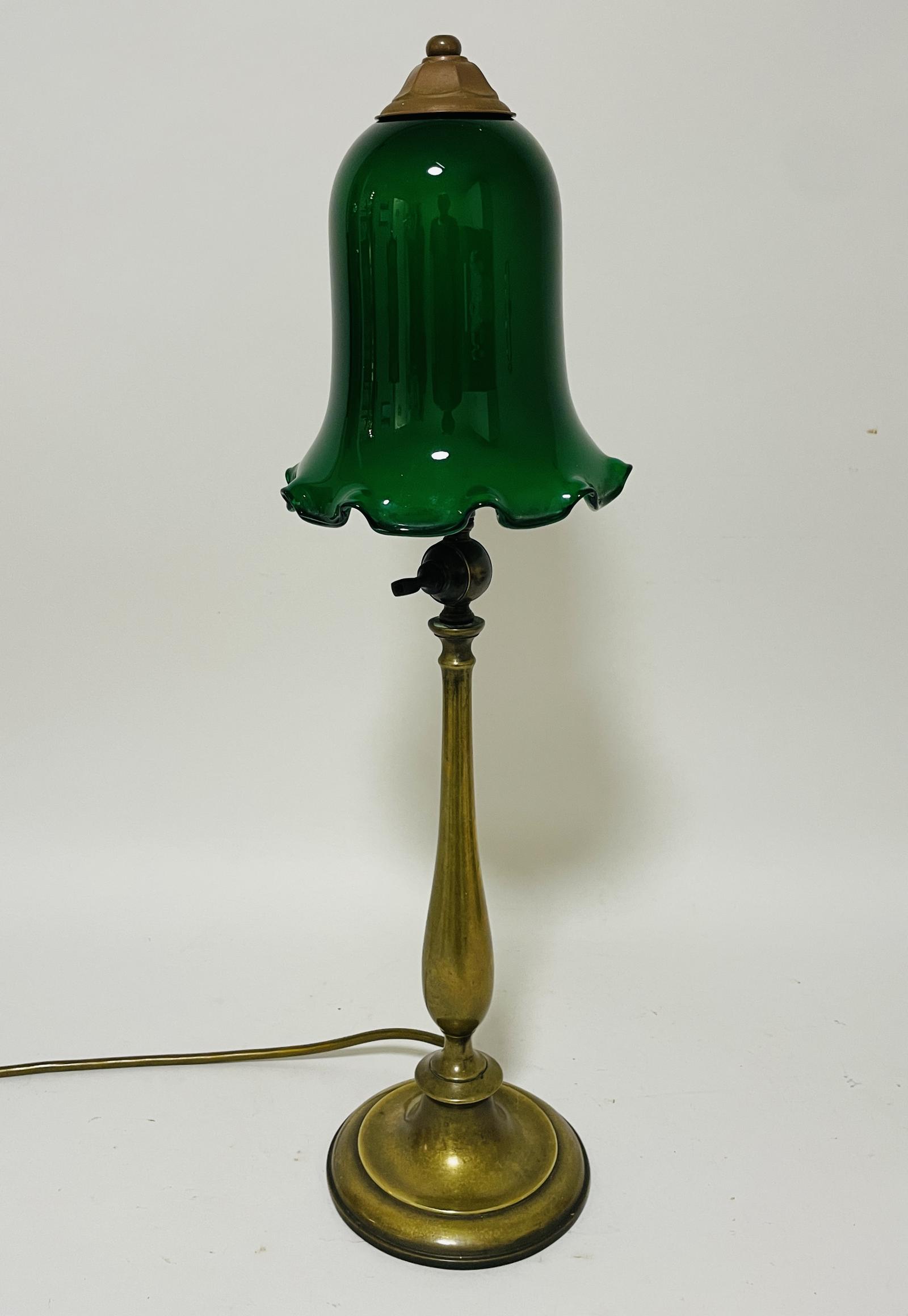 Brass Table Lamp with Green Glass Shade (1 of 11)