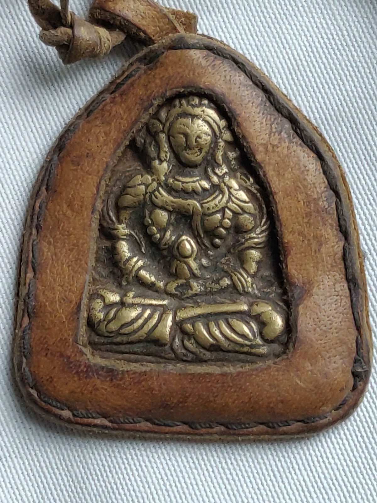 Brass Tibetan Plague Sitting Buddha Thogchag Portable Ghau Prayer Amulet