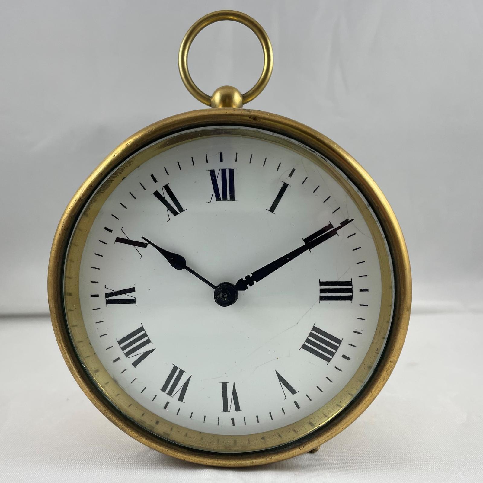 Brass Travel/Desktop Clock with Enamel Dial by R & Co, Paris