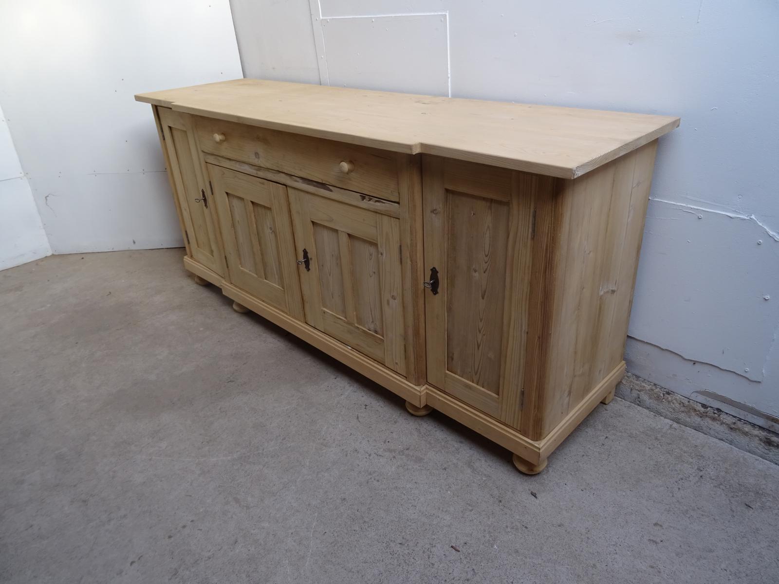 Breakfront Antique Pine 4 Door Dresser Base / TV Stand
