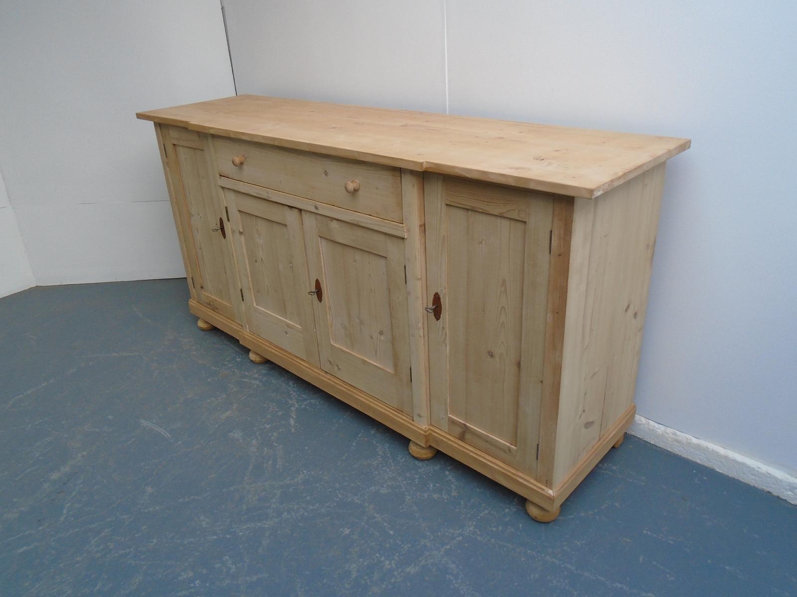 Breakfront Large Antique Pine 4 Door Kitchen Dresser Base to wax / paint
