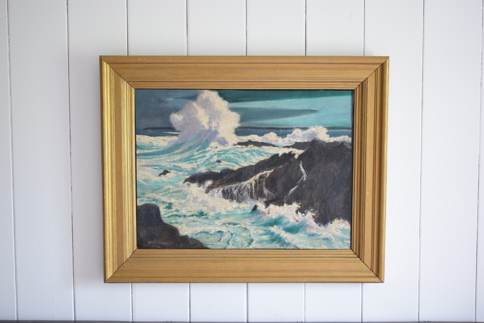 "Breaking Wave St Ives" Philip Maurice Hill Oil On Board