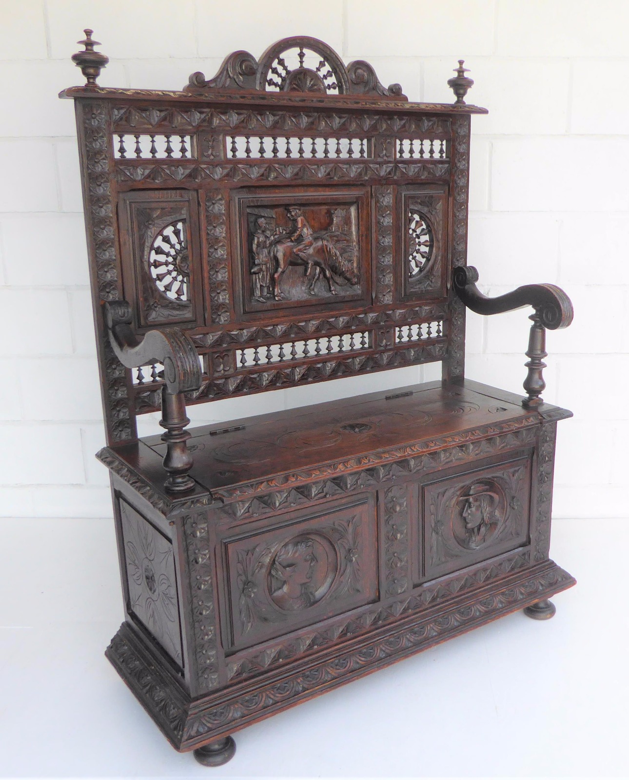 Breton High Back Carved Bench / Seat / Settle c.1890