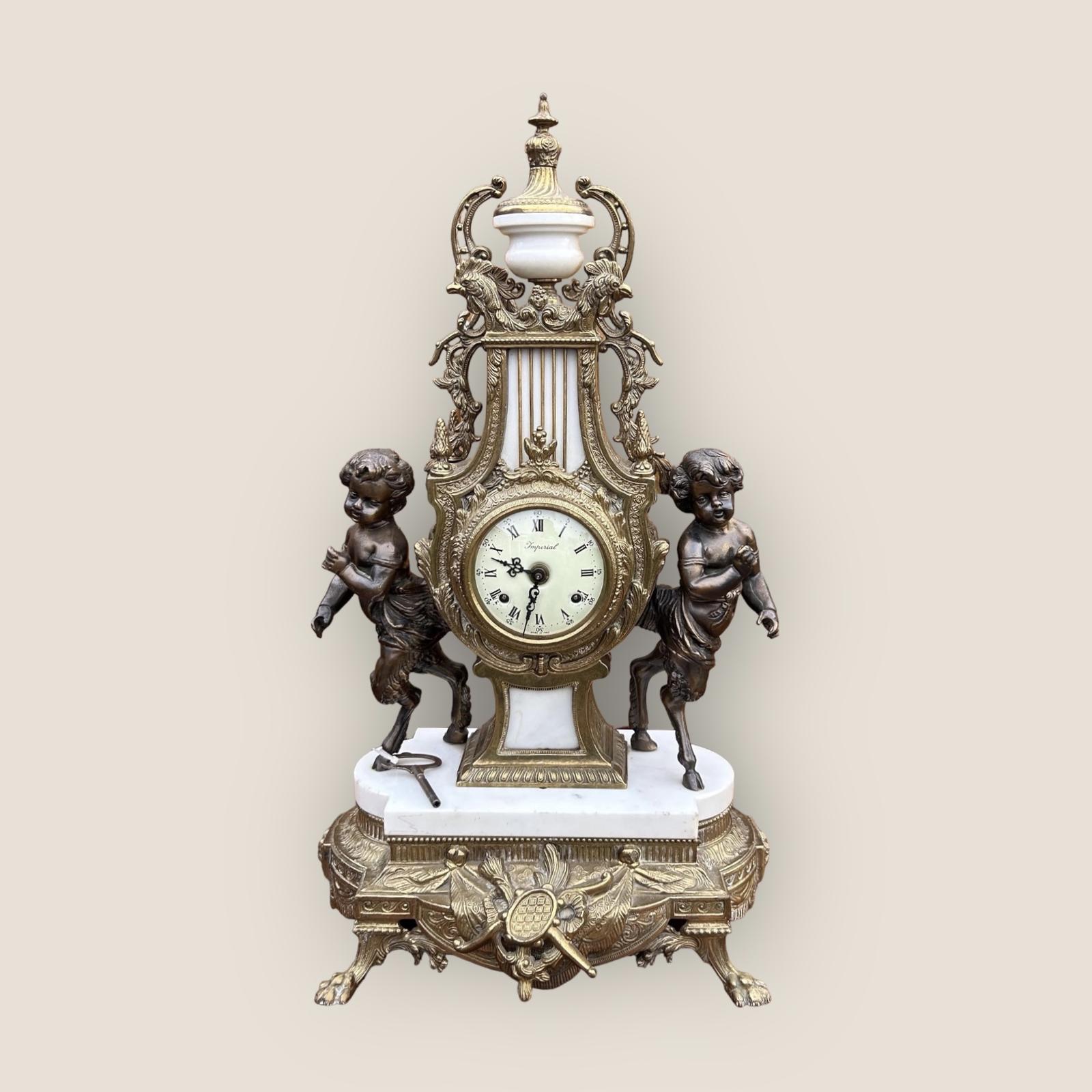 Brevattato Hermle Italian Brass & Marble Mantel Clock