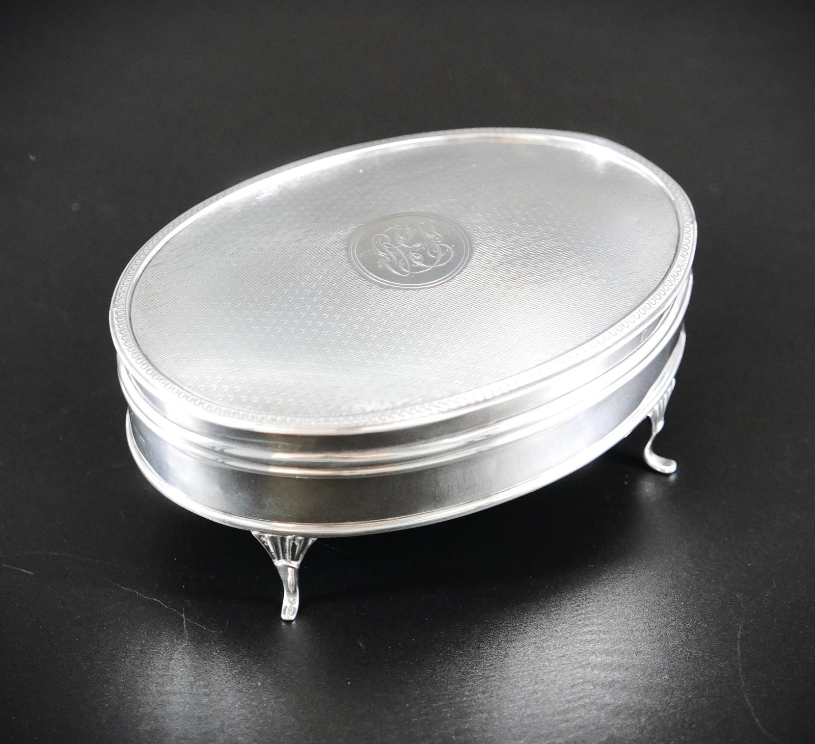 'Bridal' Oval Silver Trinket Box - 1923 by Adie Brothers