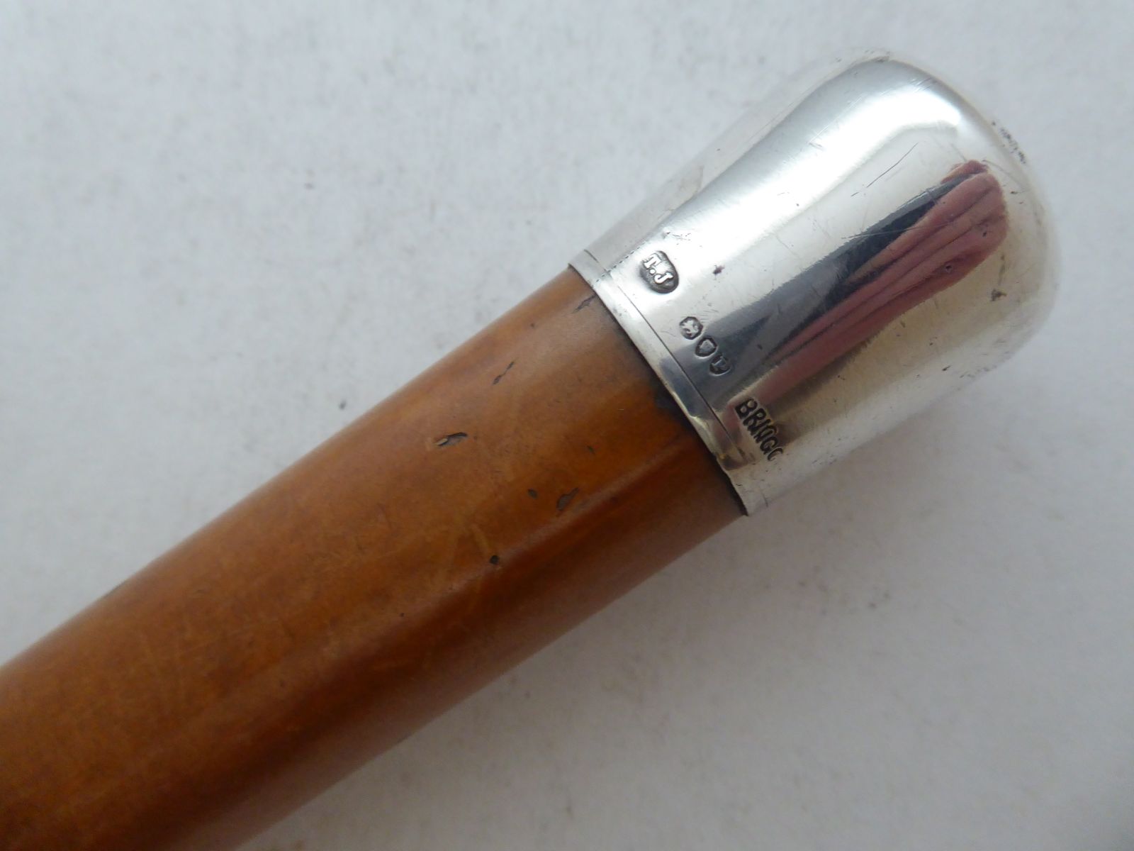 Brigg of London Walking Stick Cane 1890 Solid Silver Pommel Ebonised Wood Shaft