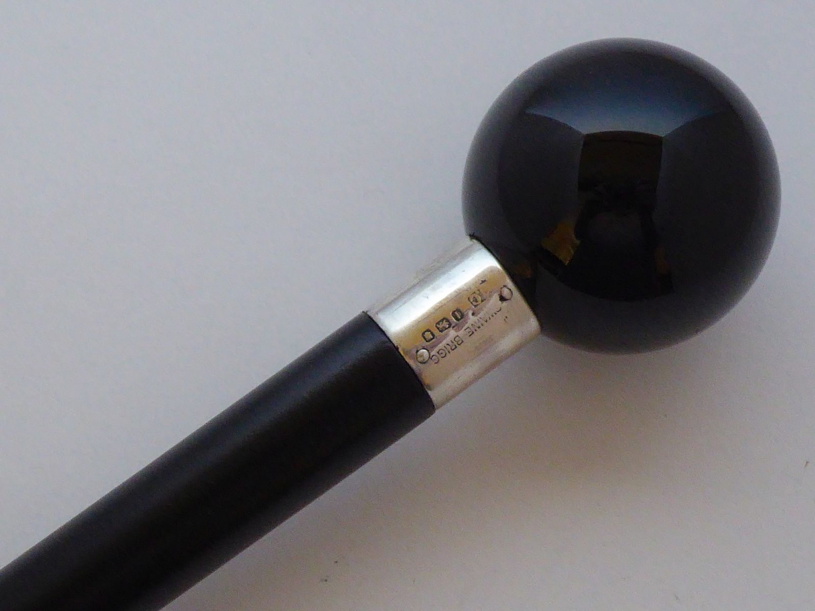 Brigg Undertakers Walking Stick Cane 1944 Hallmarked Solid Silver Ebony Shaft