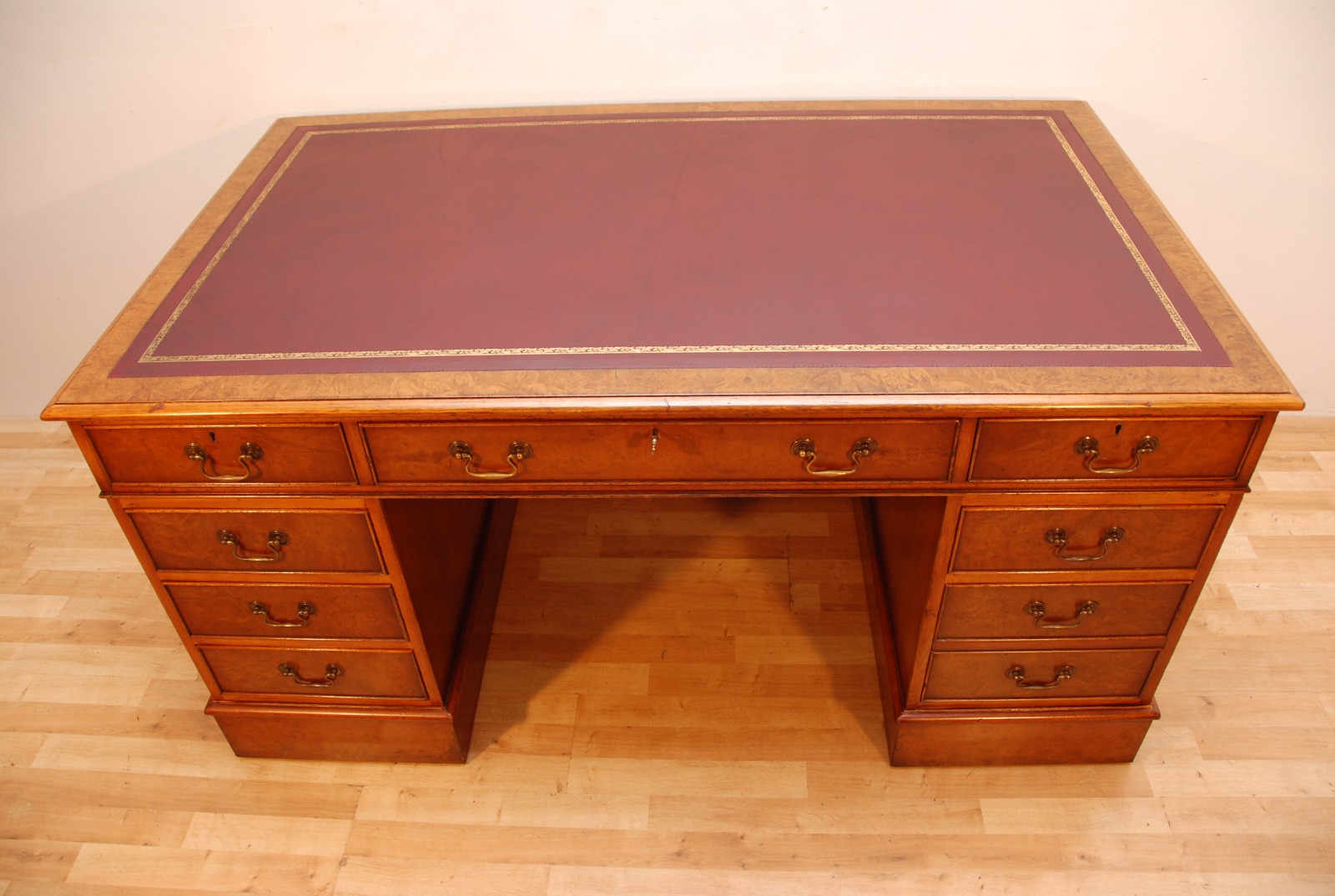 Brights of Nettlebed Burr Walnut Pedestal Writing Desk
