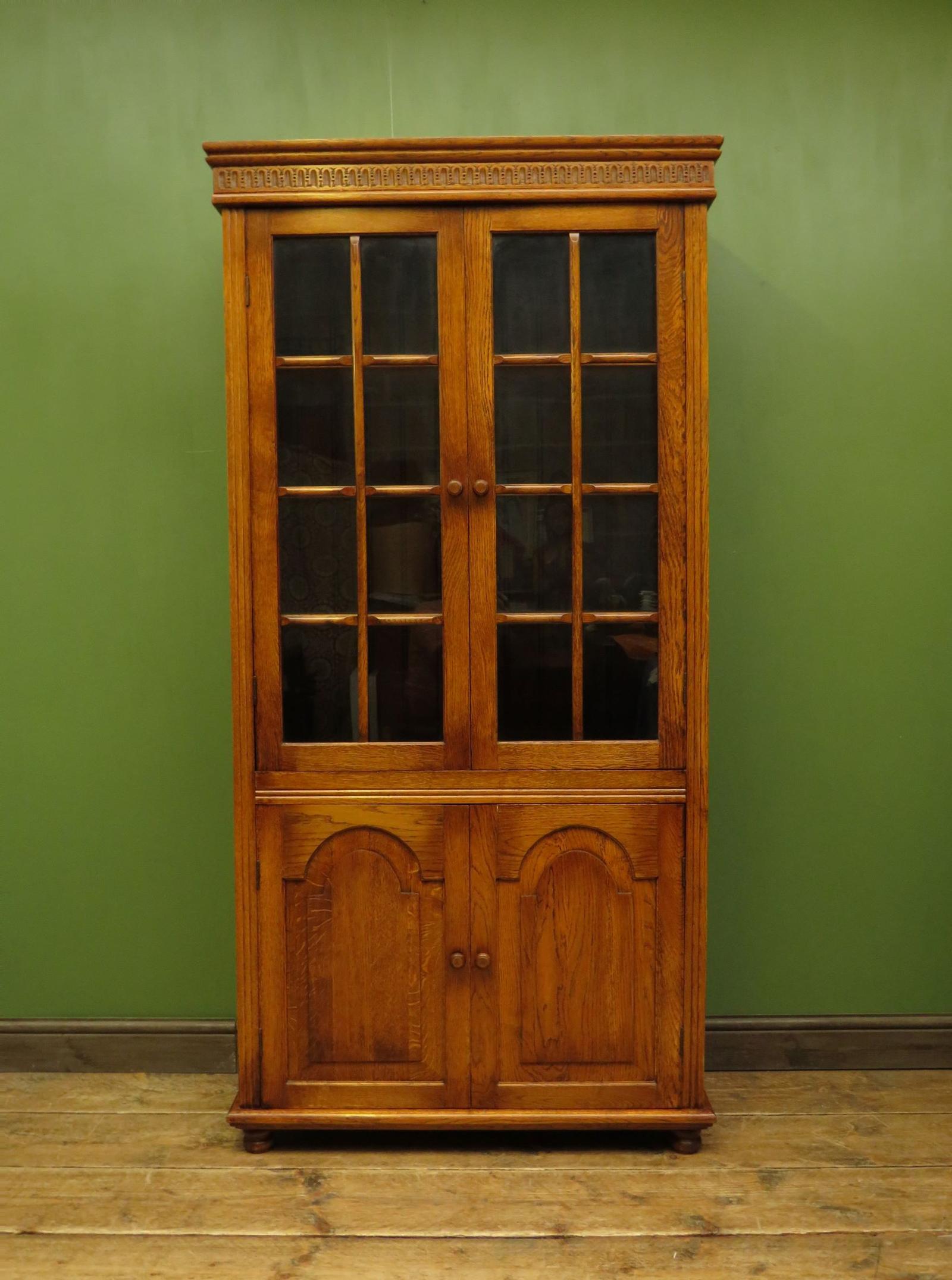 Brights of Nettlebed Solid Oak Display Cabinet Bookcase With Glazed Doors