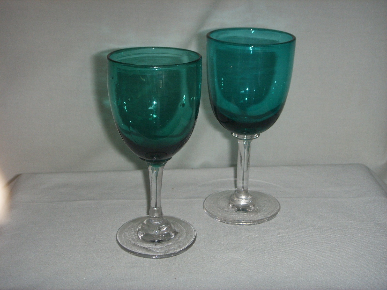 Bristol Green Glass. Two Wine Glasses. One Slightly Taller!