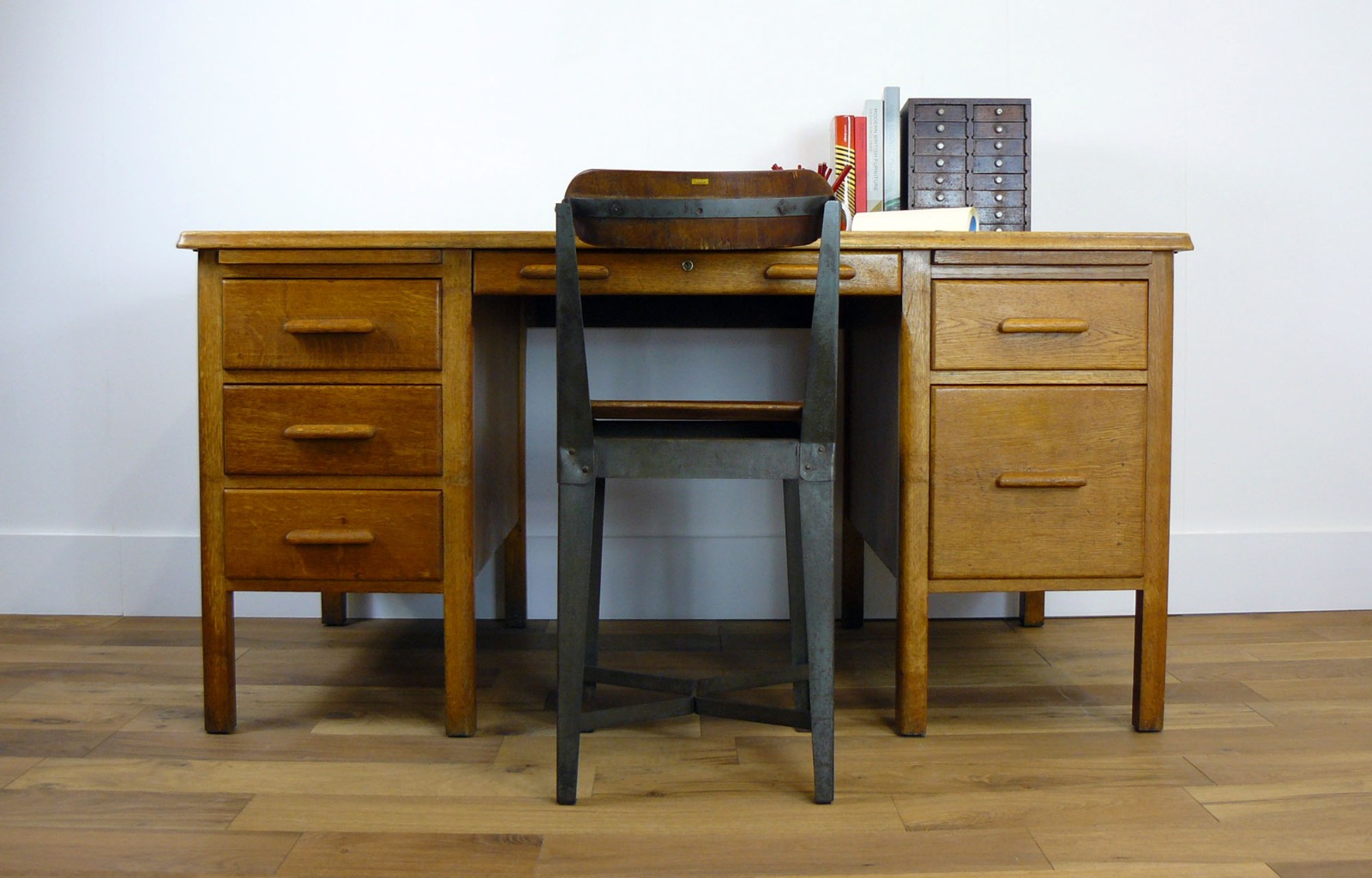 British 1930s Vintage Oak Astrola Pedestal Work Office Desk in Good Historic Order