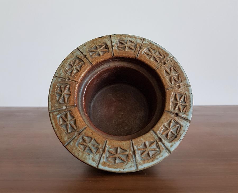 British Ambleside Brutalist / Modernist Decor, Mottled Blue & Brown Glaze Stoneware Planter