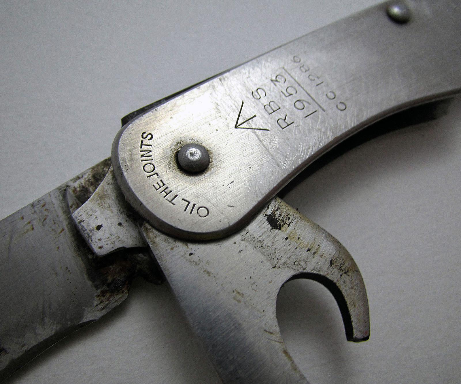 British Army 1953 Vintage Folding Jungle / Burma Jack Clasp Knife. Military Broad Arrow mark, WWII World War 2 era.