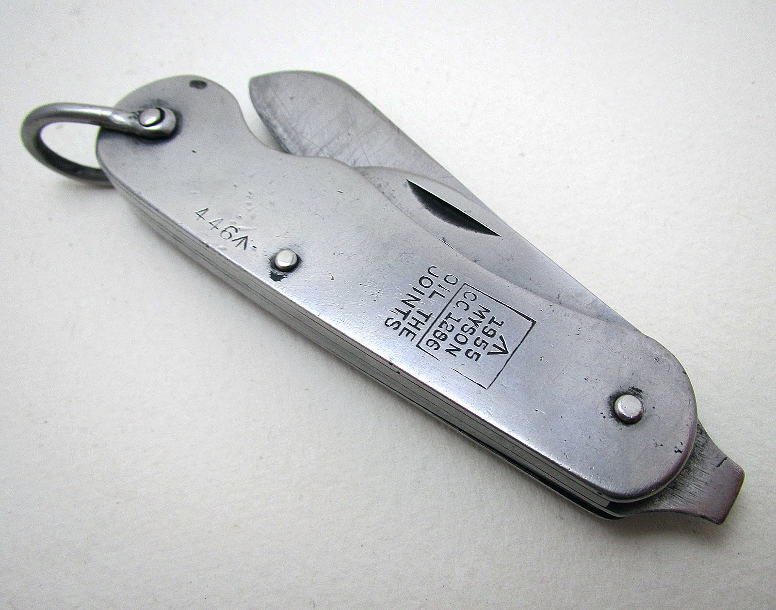 British Army Vintage Folding Jack Clasp Knife. Military Broad Arrow Mark, World War 2 WWII Era, Stainless Steel Sheffield, 1955 Myson Cc1286