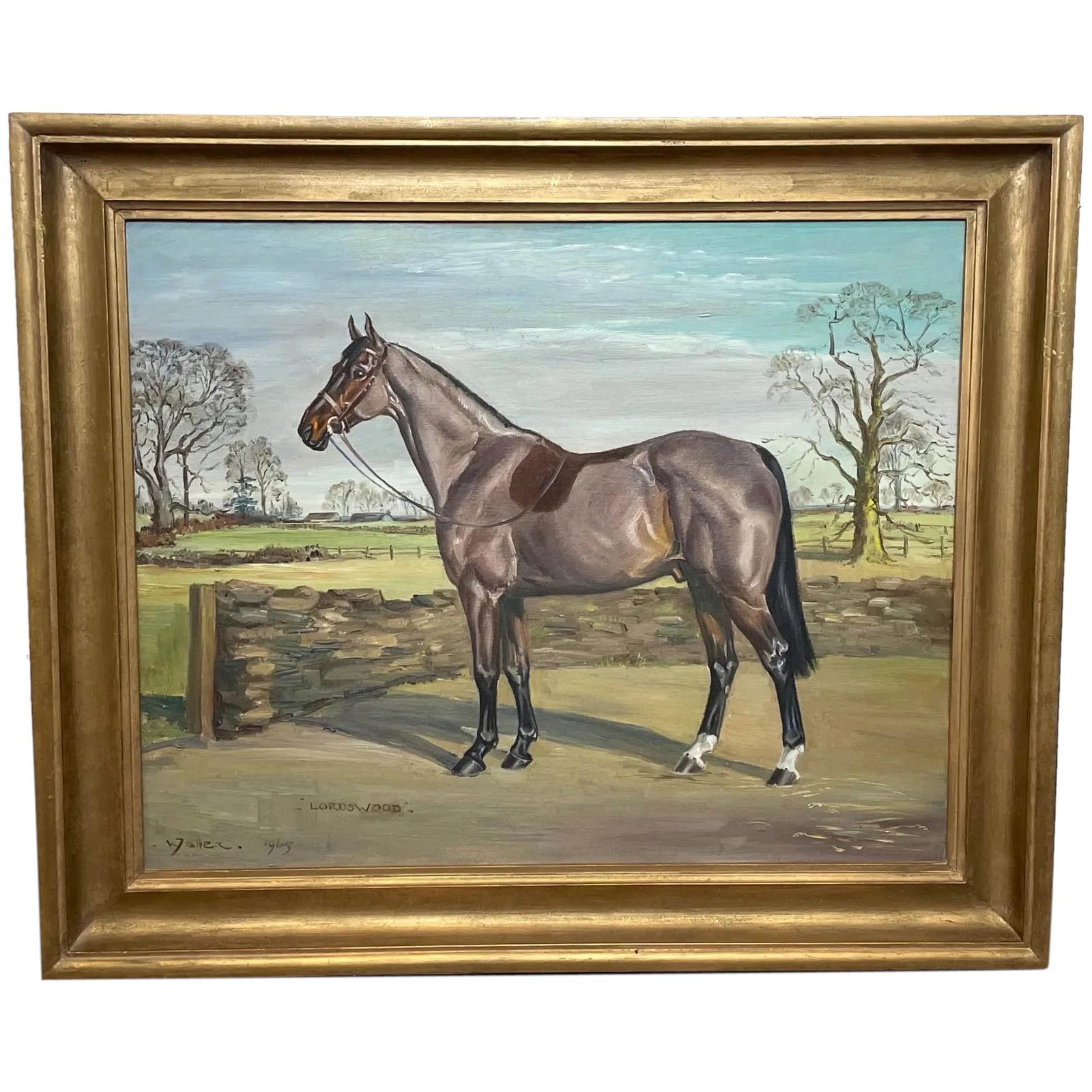 British Equine Oil Painting Horse "Lordswood" Portrait Standing Proud