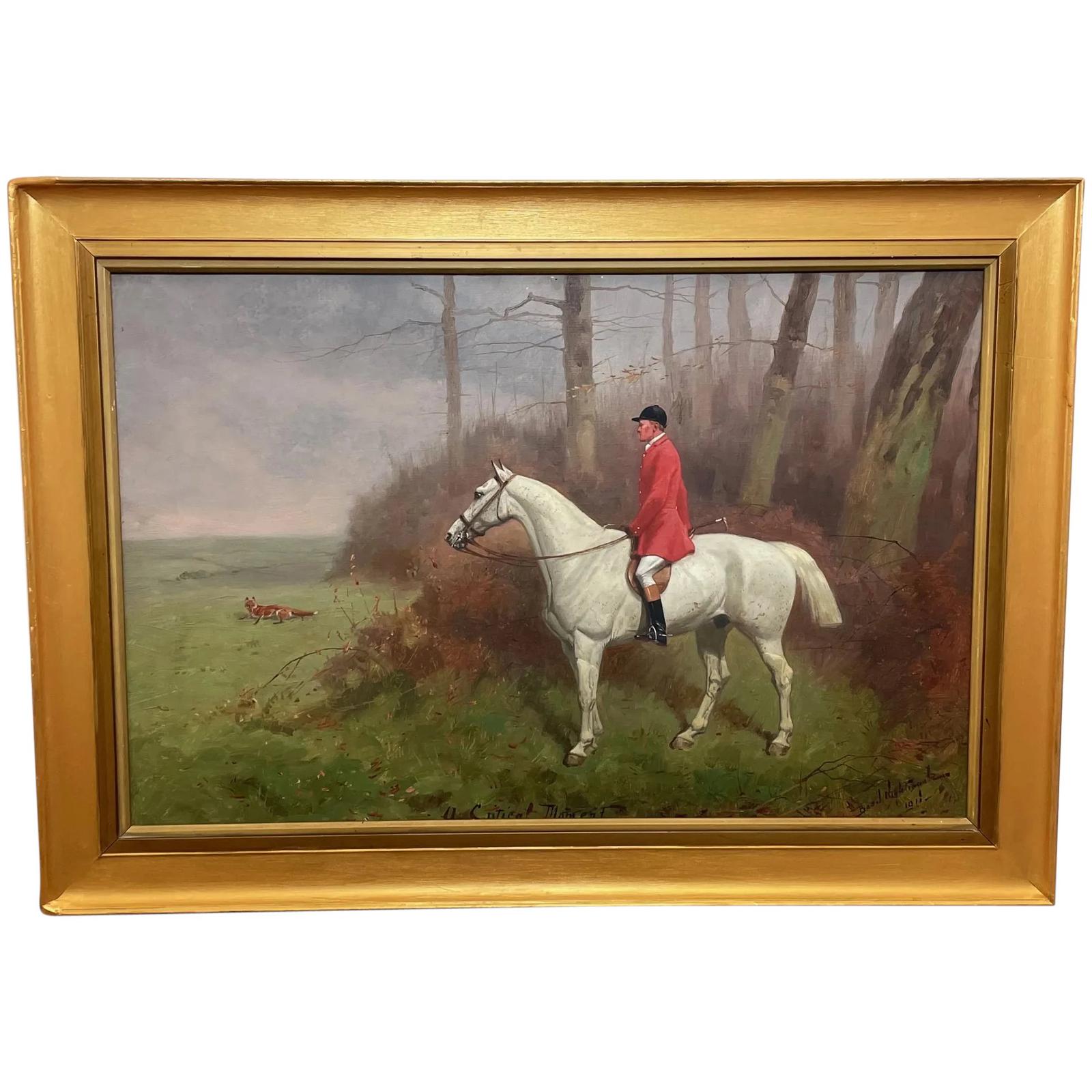 British Gentleman Hunt Rider on White Horse Oil Painting A Critical Moment Signed Basil Nightingale 1864-1940
