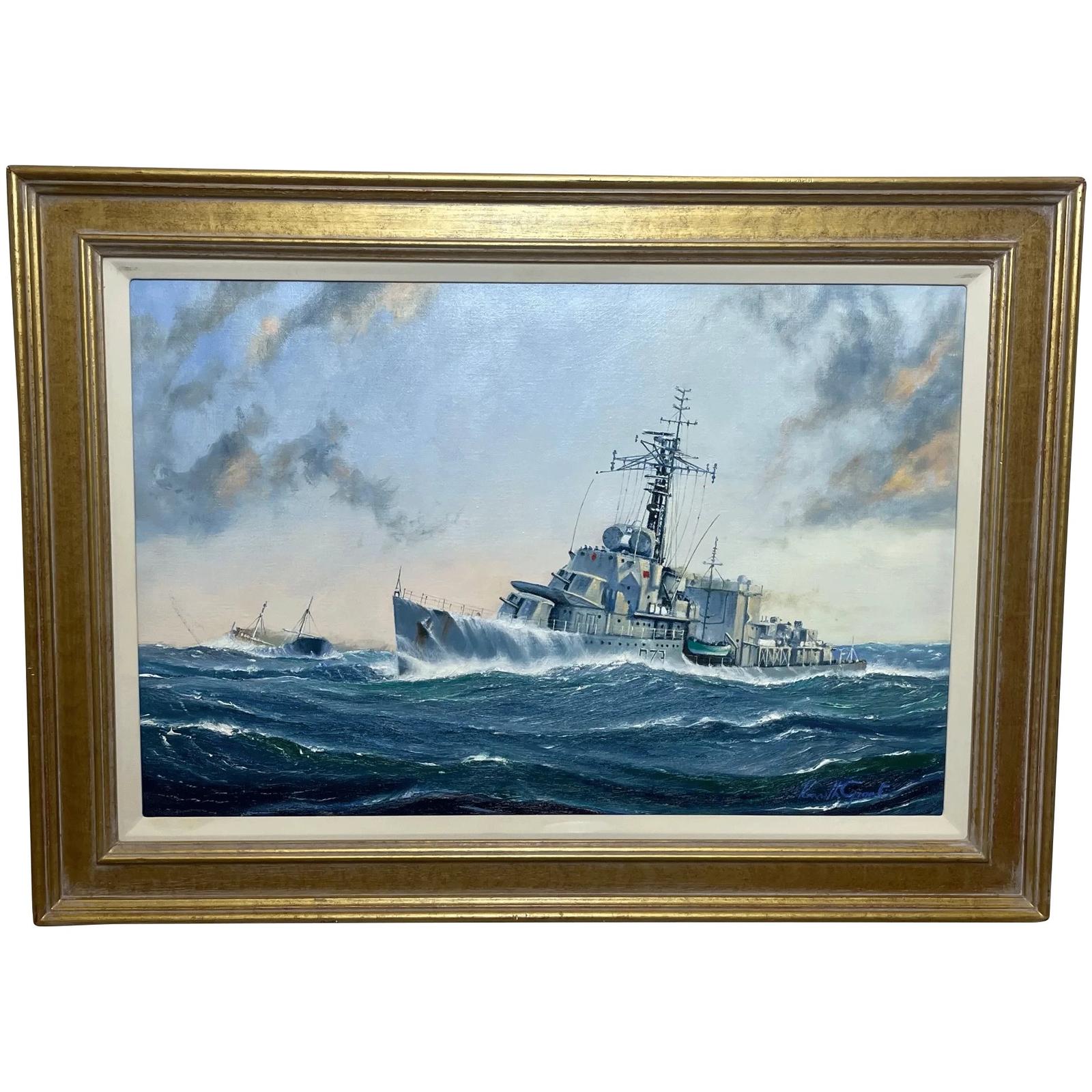 British Marine Oil Painting WW2 C Class Destroyer HMS Cavalier by Kenneth Grant