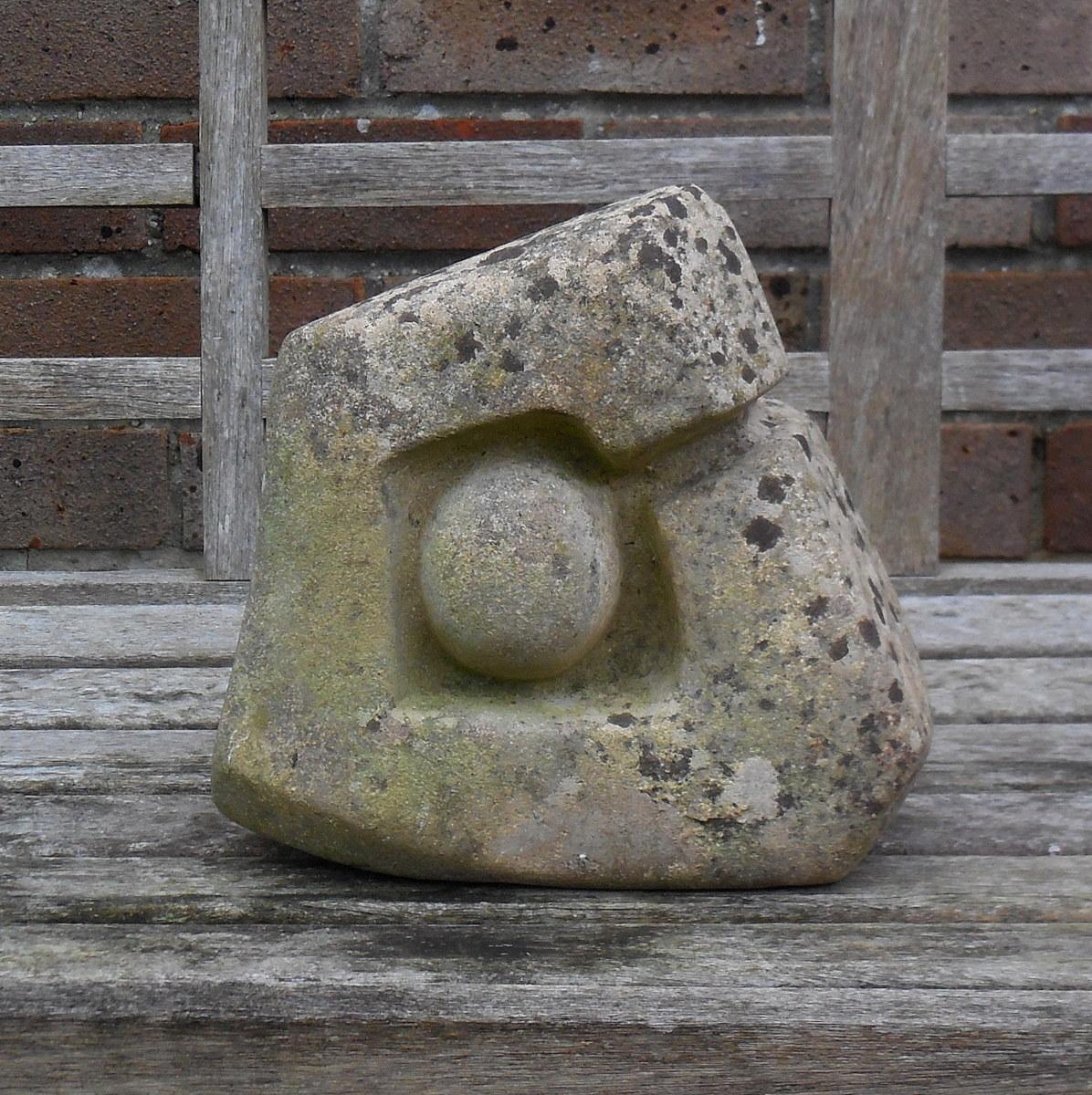 For sale is this fabulous mid-century British Modern abstract stone sculpture I bought recently at auction from the estate of a sculptor, Lucy Wynne. Lucy Wynne was a sculptor, print maker, and artist who also worked for the Design Council and an interior designer at John Lewis. Alan Turner was her husband and they both spent most of their lives living in Islington, London. However, I don't believe this was by her as it's nothing like her style. This organic abstract carving shows evidence of having been displayed outdoors. It measures about 9 inches by 9 inches by about 4 inches thick. It weighs a hefty 6.54 kilograms. I believe the stone used is a limestone or similar material. Condition is excellent with a nice weathered look including lichen spots. It's a lovely sculpture which would make a great addition to anyone's collection. It could be displayed indoors or outdoors.
