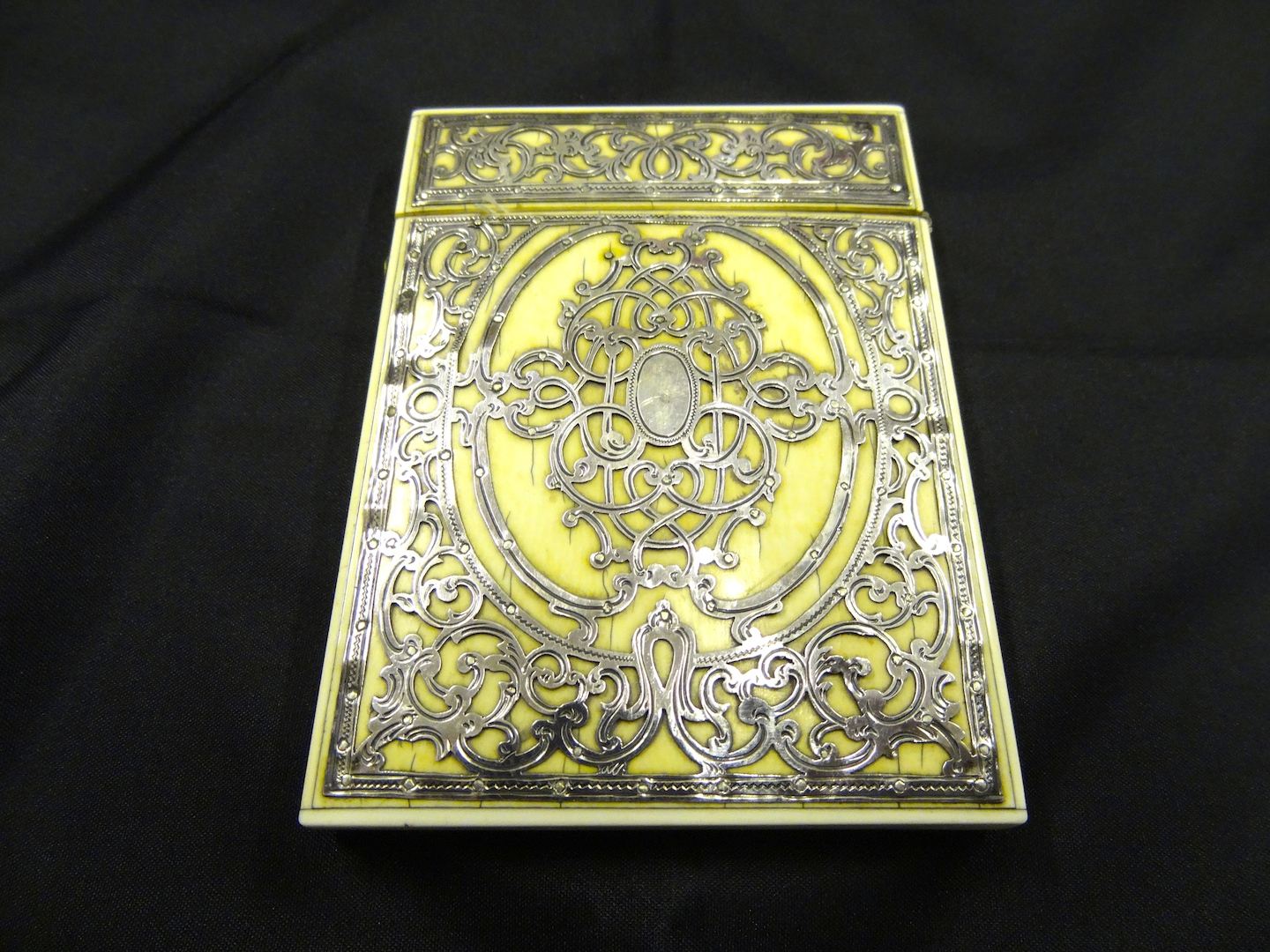 British or Anglo-Indian Ivory & Silver Card Case, Engraved Openwork Silver, 19th Century