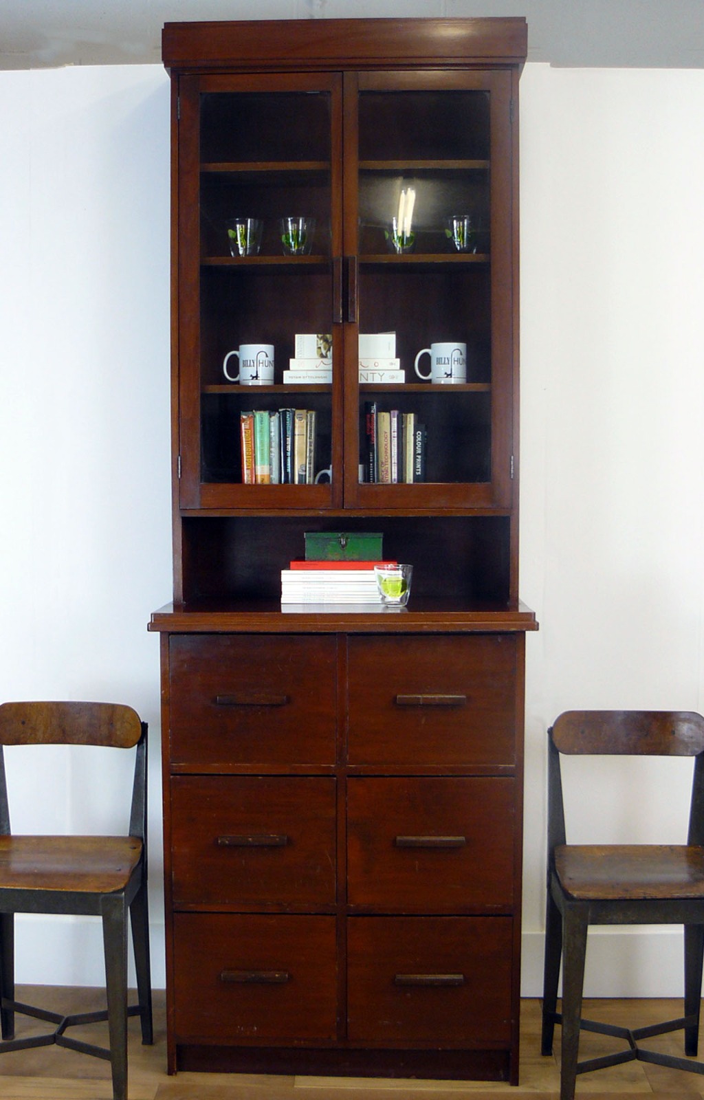 British Vintage 1940s Glazed School 6 Drawer Bookcase