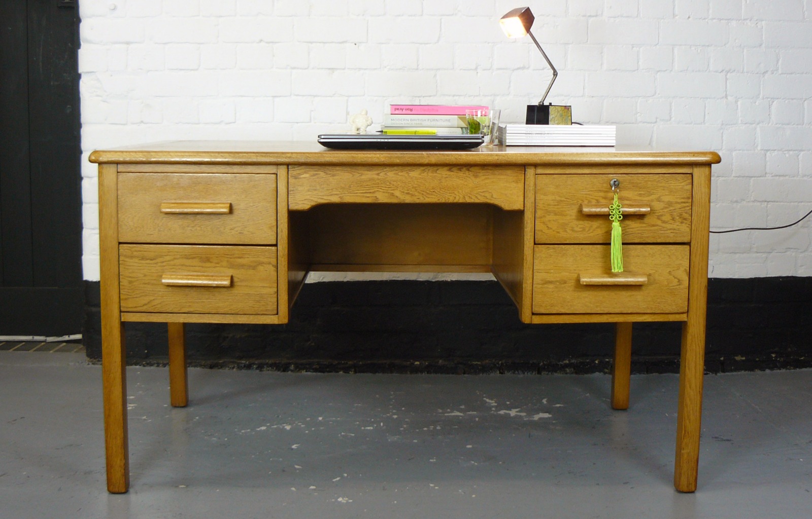 British Vintage 1940s Oak 4 Drawer Desk with Key (1 of 1)