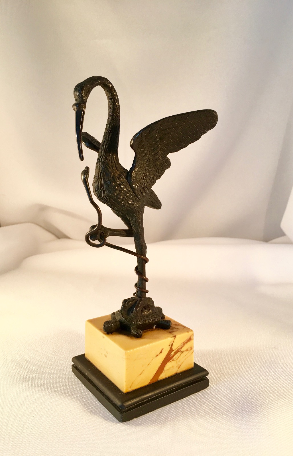 Bronze Crane RAised On Marble & Slate Base