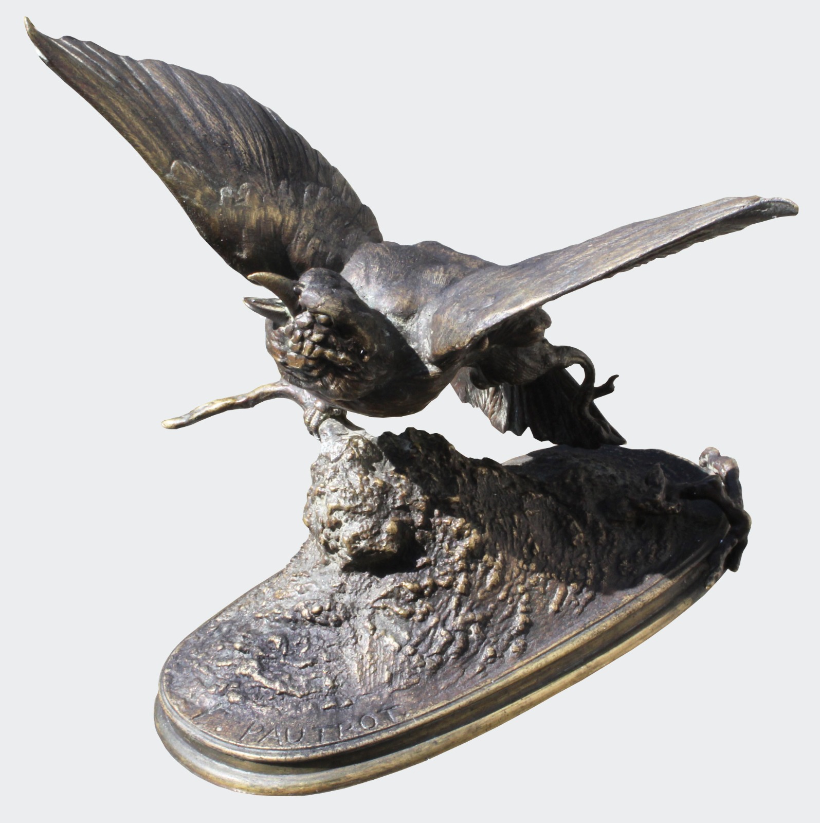Bronze Figure of a Bird with Outstretched Wings. Signed: Ferdinand Pautrot
