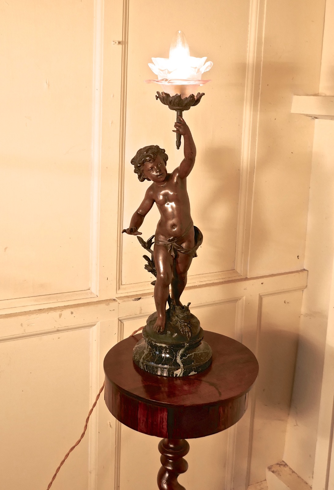 Bronze Lamp of a Cherub or Putti After Ernest Justin Ferrand