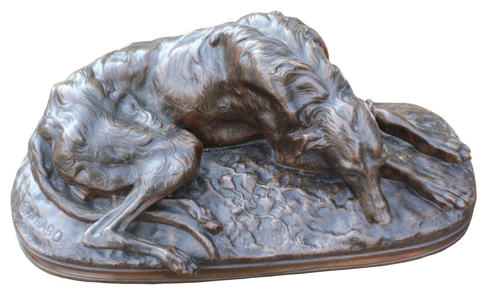 Bronze Model of a Reclining Hound, Signed: Paul Gayrard