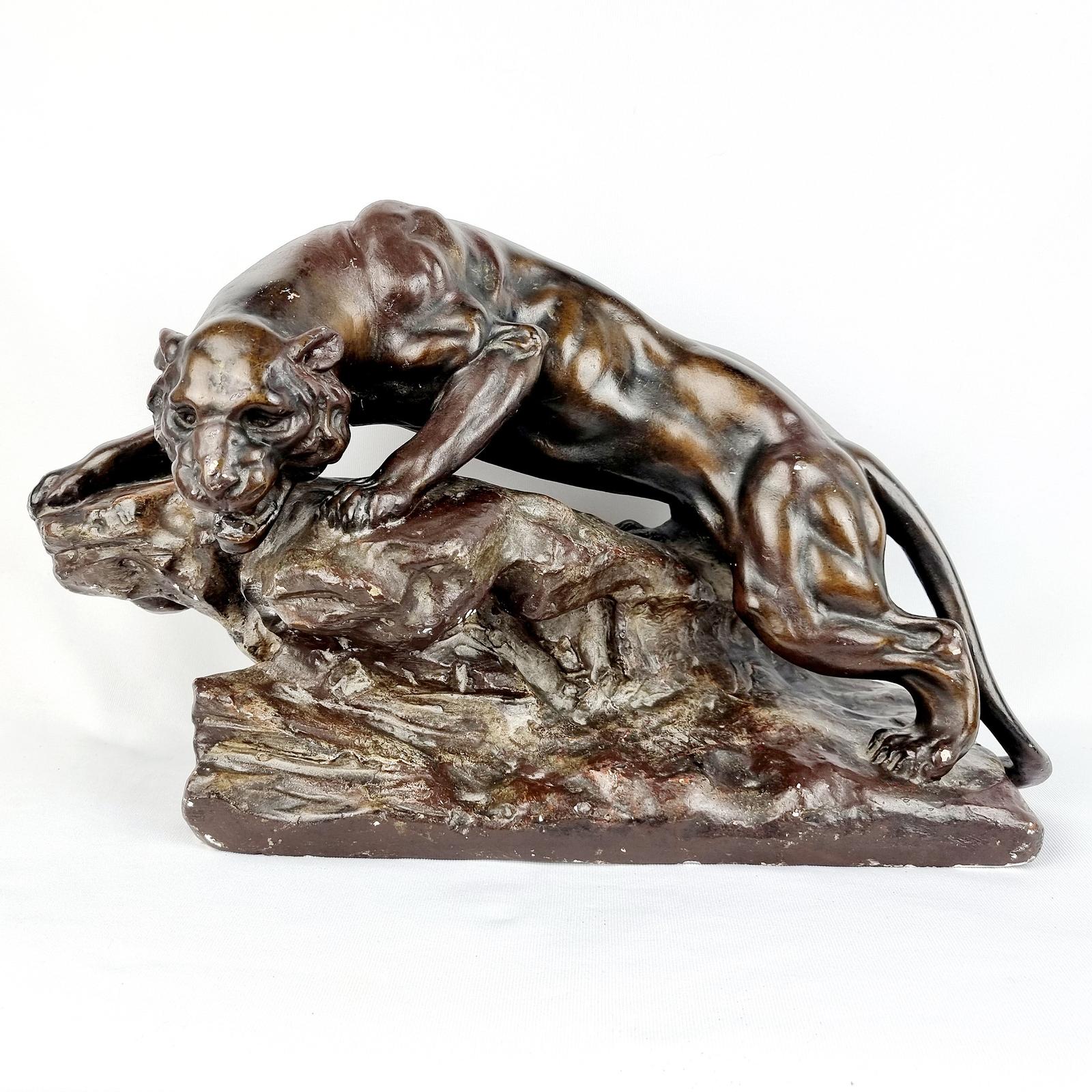 Bronzed Coloured Plaster Lioness Statue