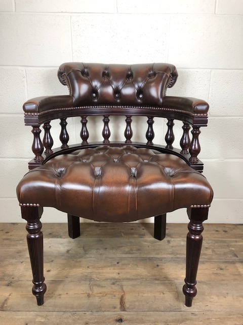 Brown Leather Chesterfield Style Button Back Captains Chair or Desk Chair (1 of 1)