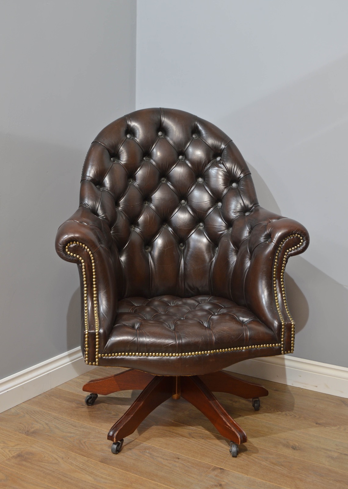 Brown Leather Chesterfield Swivel High Back Desk Chair
