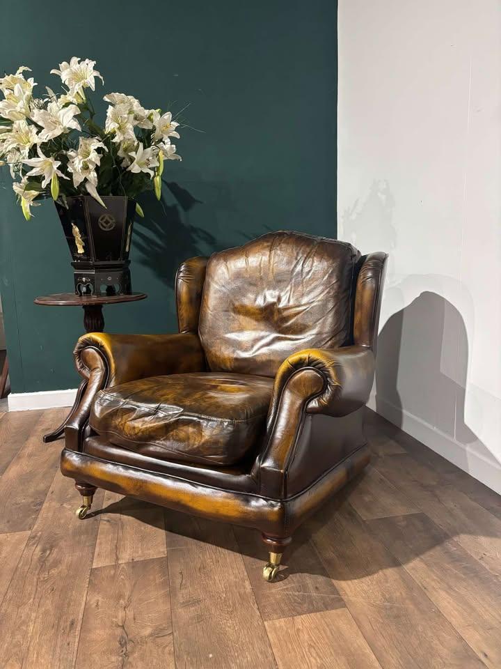 Brown Leather Wing Back Arm Chair