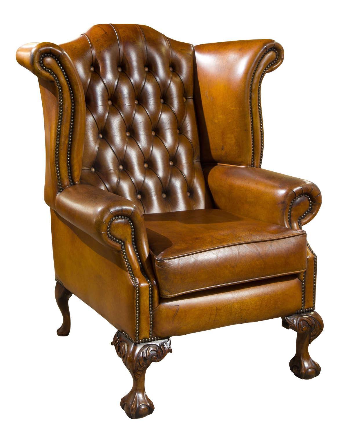 Brown Tan Leather Wing Chair