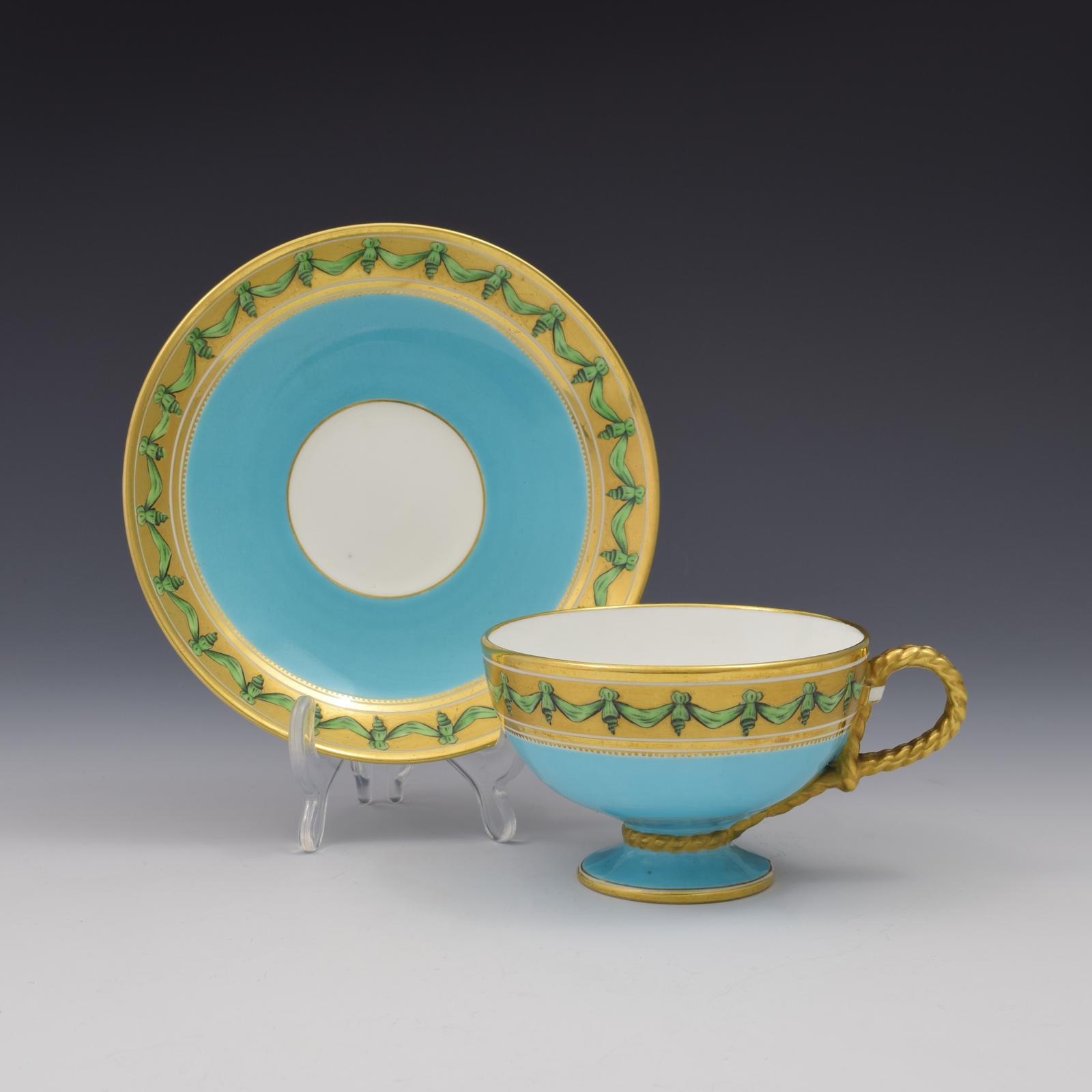 Brown-westhead Moore Porcelain Turquoise Rope Handle Tea Cup & Saucer