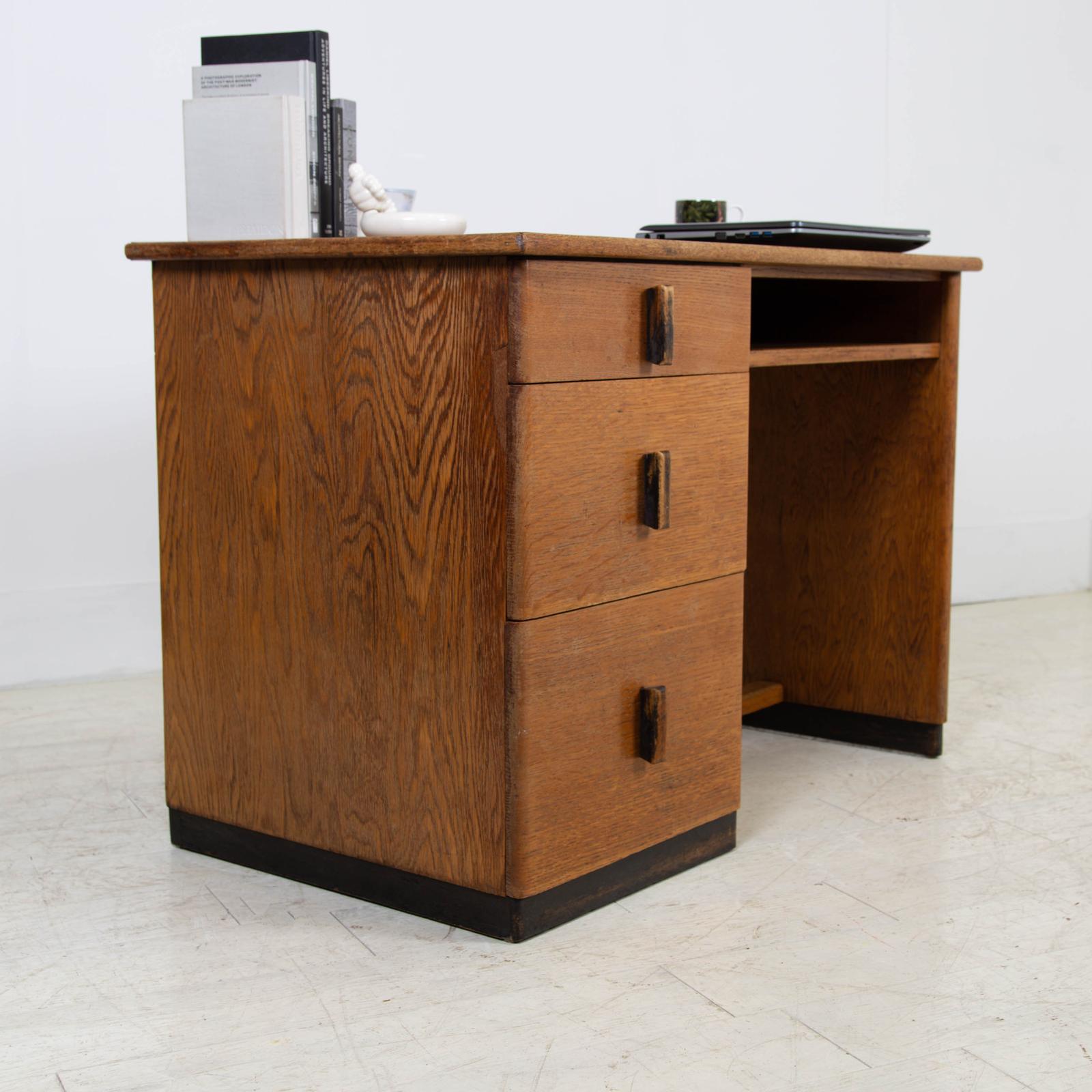 Brynmawr Workshop 1930s Art Deco Oak Desk with 3 Drawers