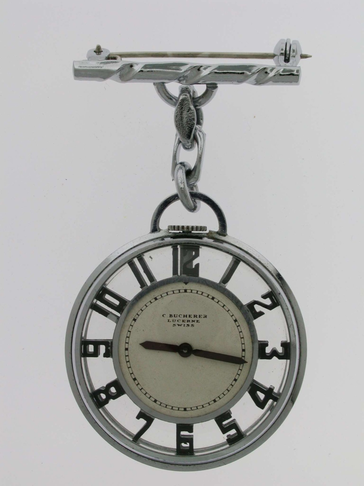 Bucherer Skeleton Art Deco Pocket Watch  with Art Deco Brooch Swiss 1930 (1 of 1)