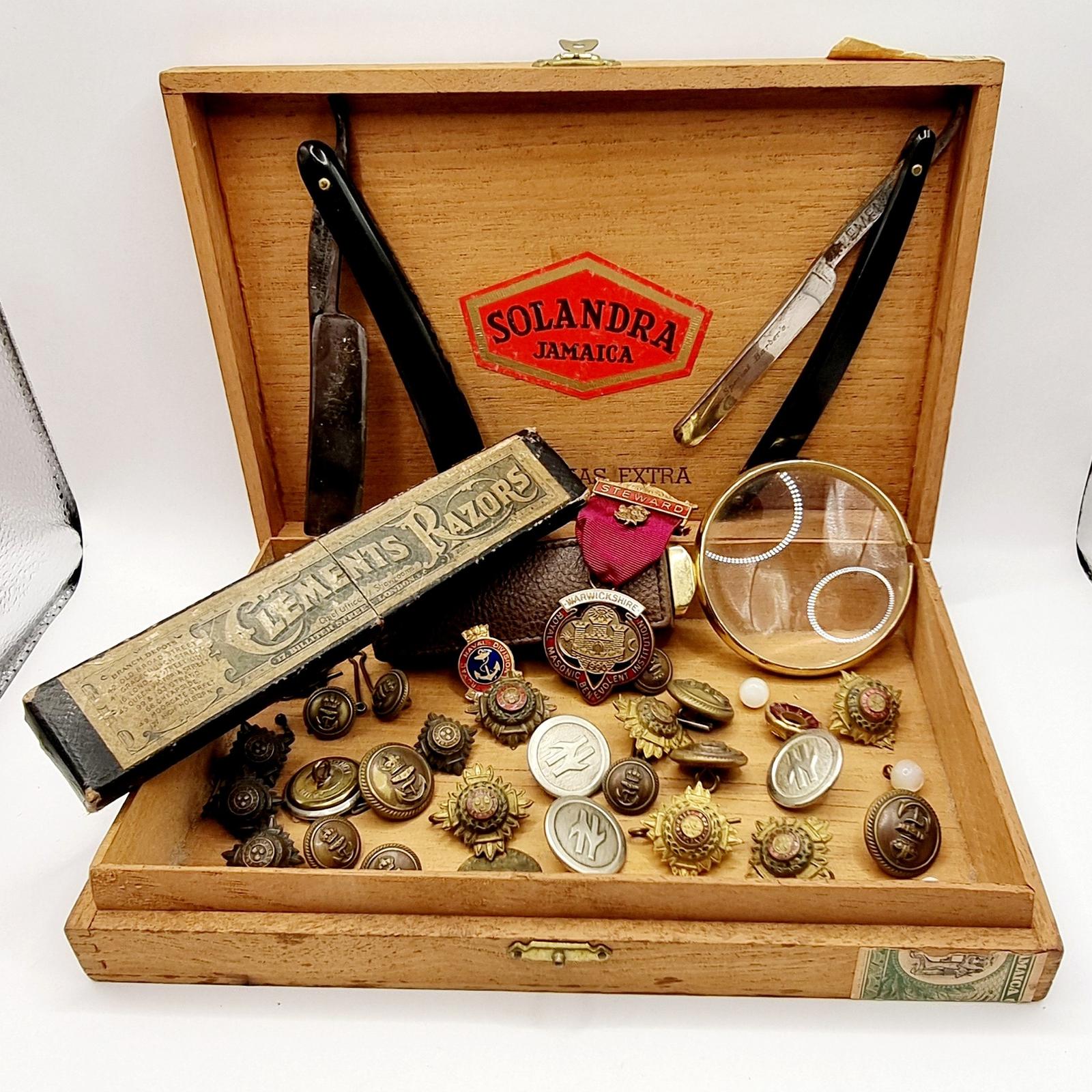 Bundle of Military Buttons , Enamel Badge, Medal Razor etc
