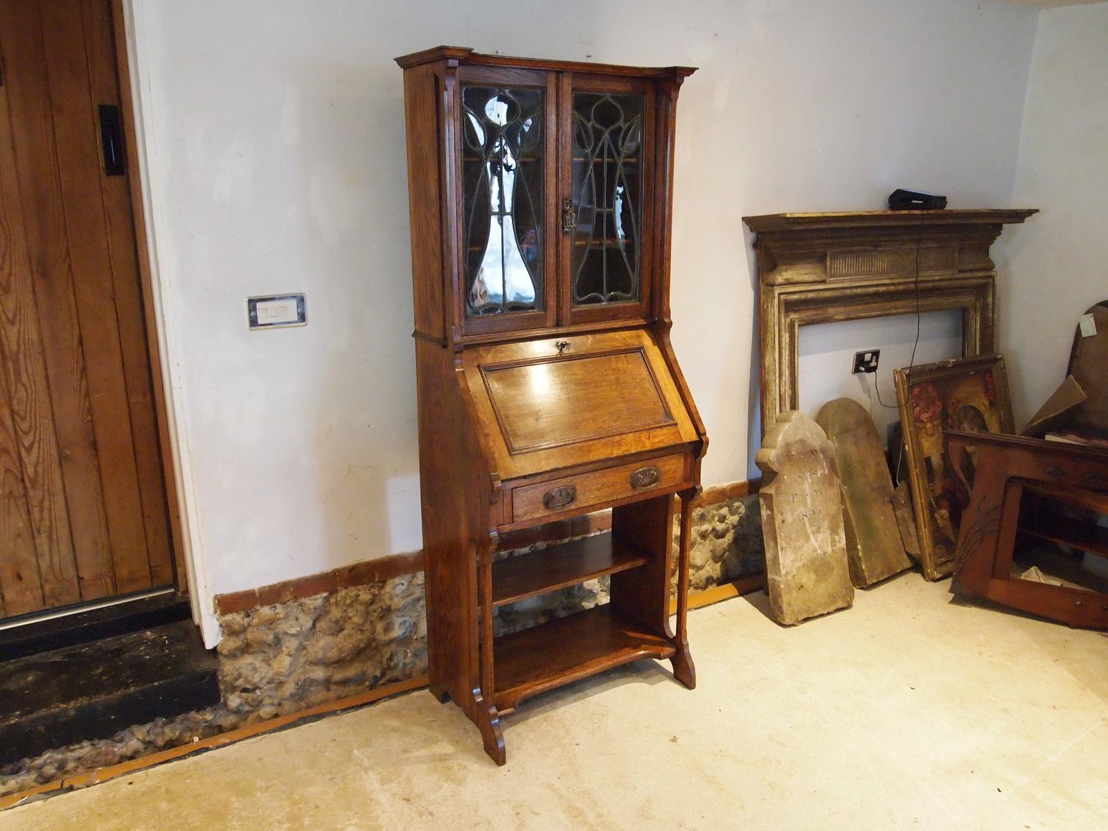 Bureau Bookcase Arts & Crafts Oak Liberty c.1900