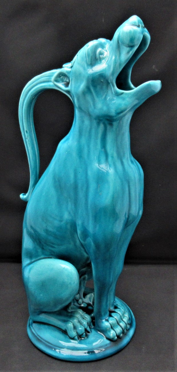 Burmantofts Faience Grotesque Hound / Ibex Jug or Ewer c.1890