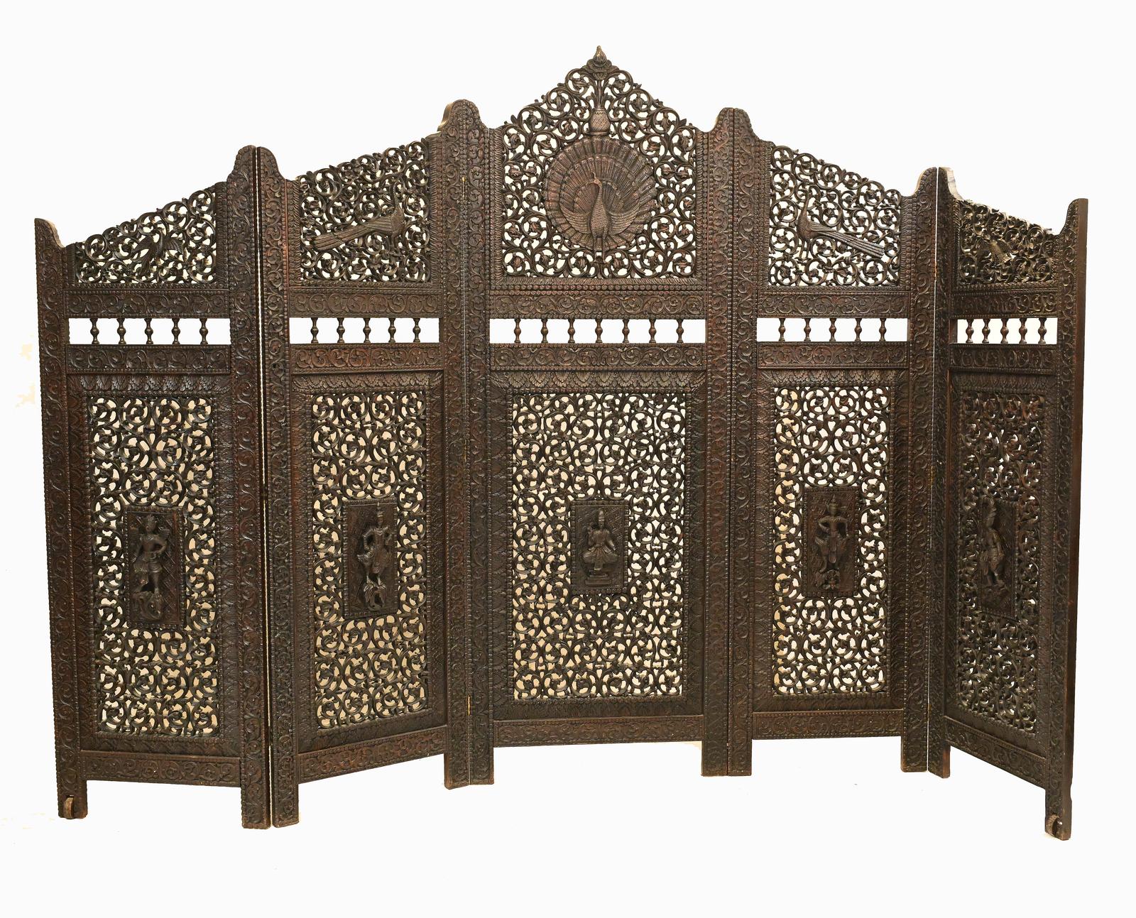 Burmese Antique Screen 5 Panel Carved Room Divider Myanmar 1850