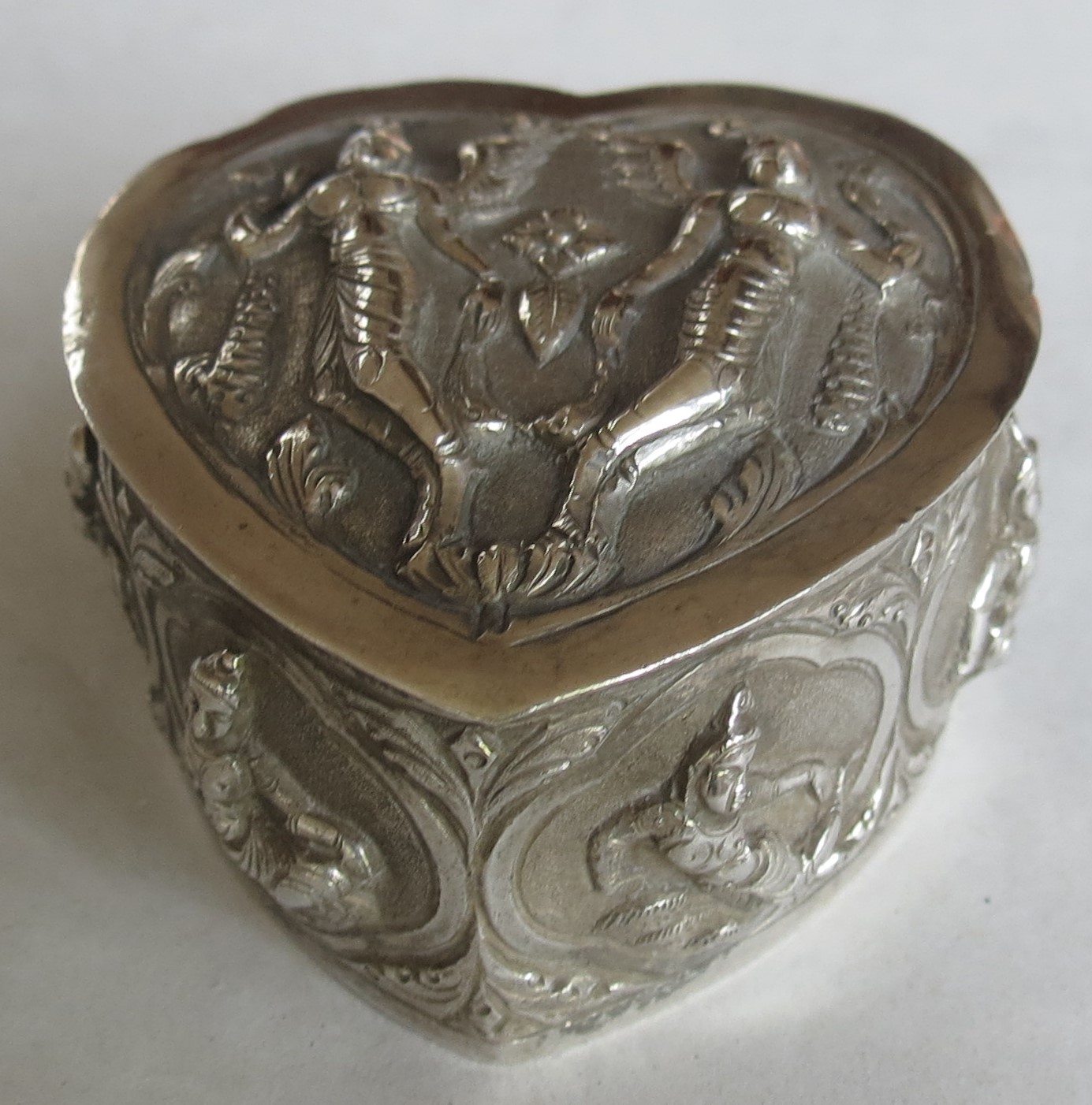 Burmese or Indian Silver Heart-Shaped Pot (1 of 7)