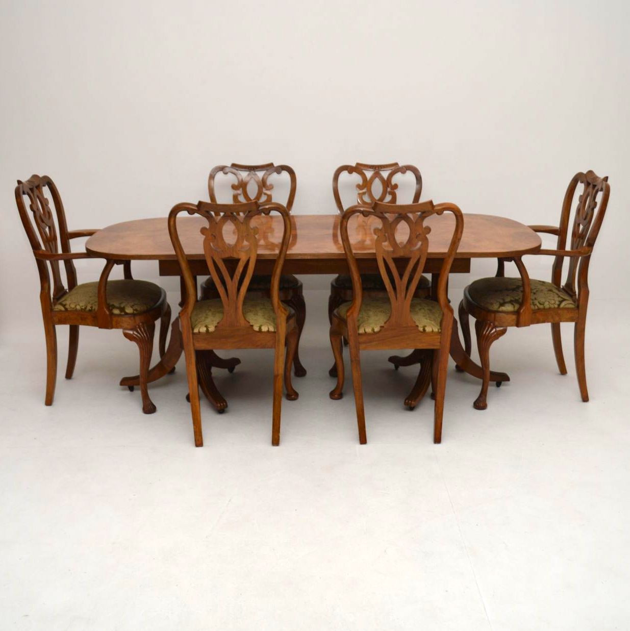 Burr Maple & Walnut Dining Table Plus 6 Chairs c.1920 (1 of 1)