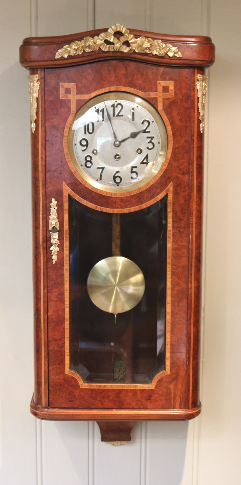 Burr Maple Westminster Chime Wall Clock, Germany c.1920 (1 of 8)