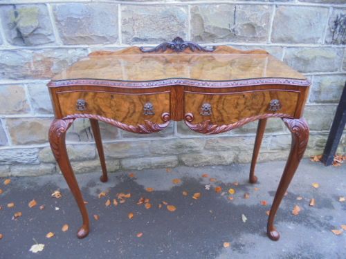 Burr Walnut 2 Drawer Side Table / Hall Table c.1920