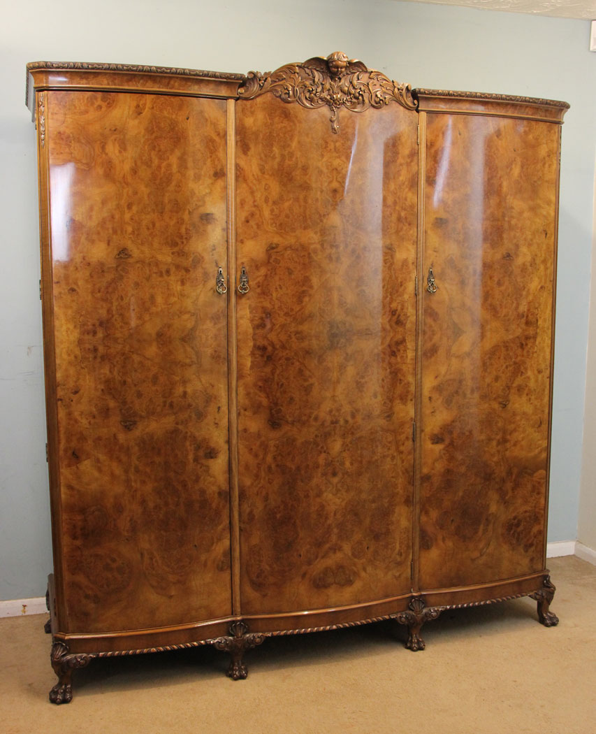 Burr Walnut 3 Door Wardrobe C.1920 (1 of 1)