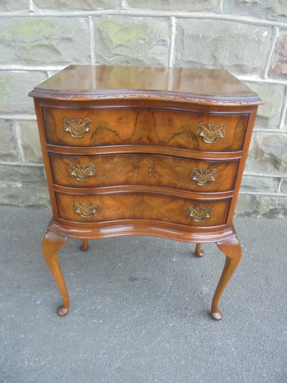 Burr Walnut 3 Drawer Bedside Chest c.1920