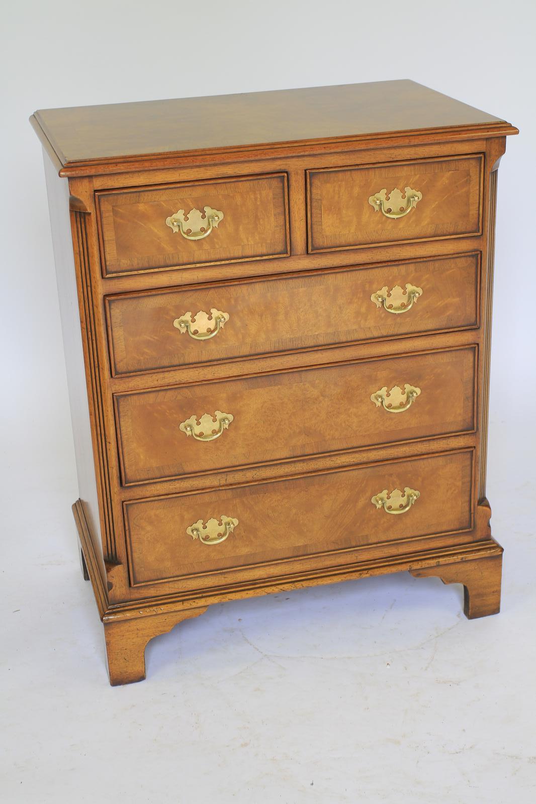 Burr Walnut 5 Drawer Canted Corner Chest 1930s