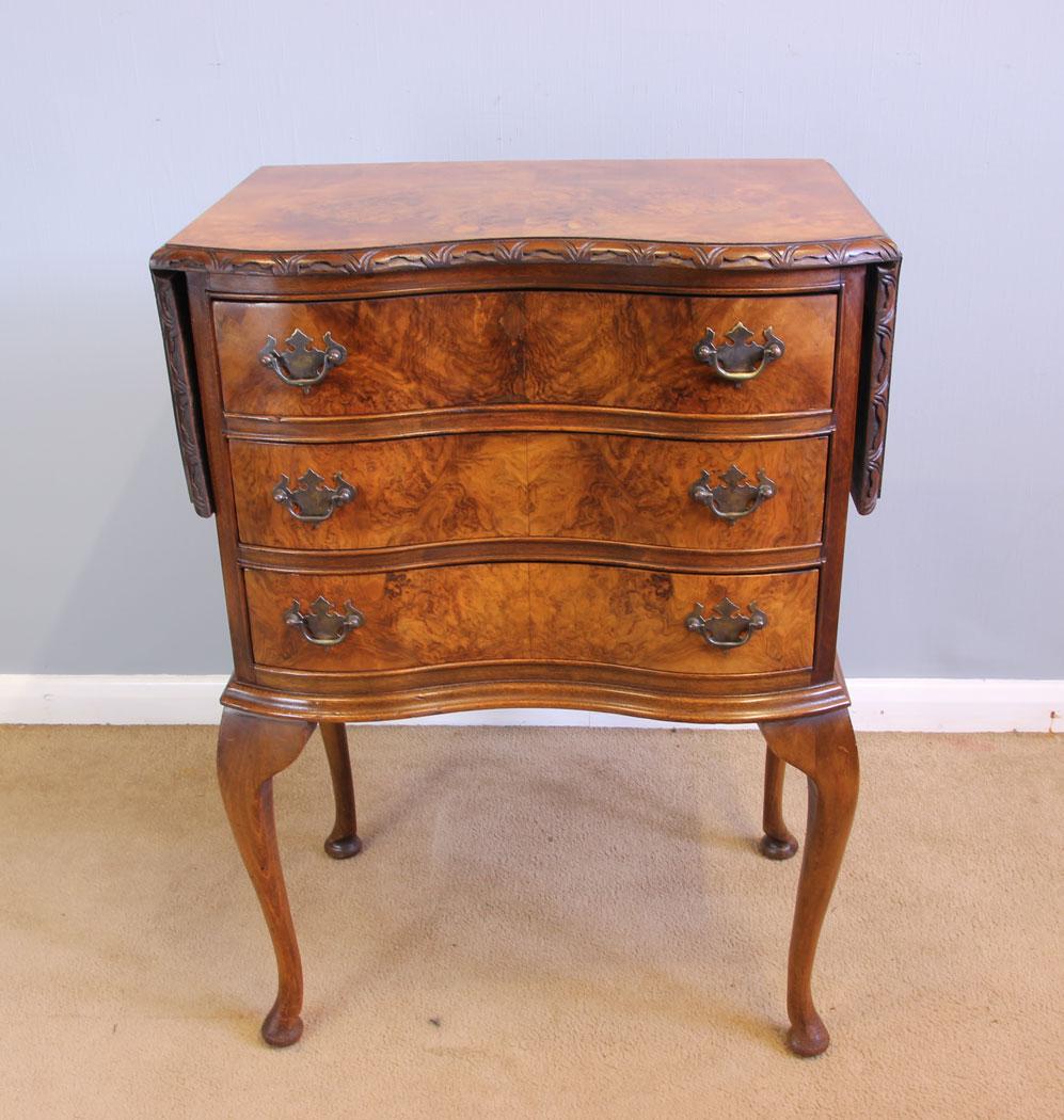 Burr Walnut Antique Bedside Lamp Table / Chest of Drawers