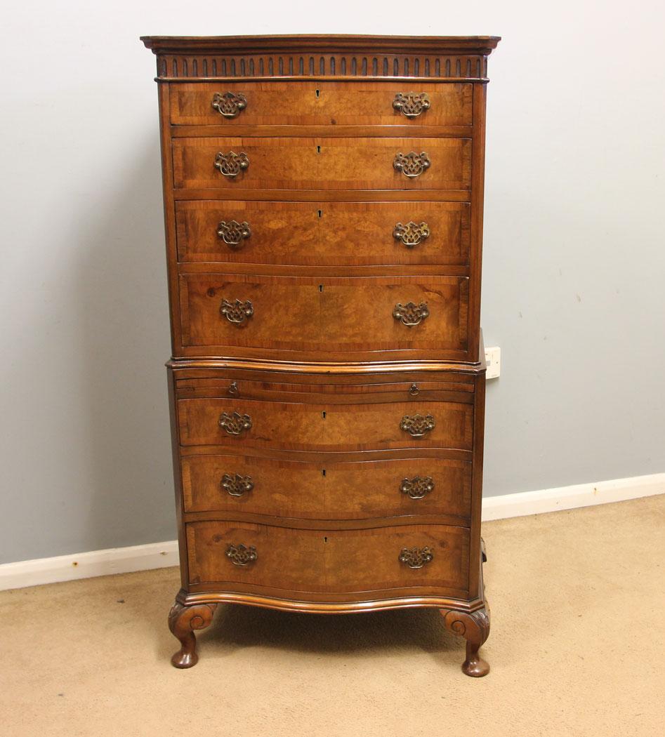 Burr Walnut Antique Tallboy Chest on Chest Drawers
